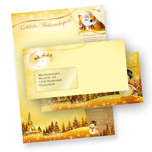 Briefpapier Set Weihnachtspost (500 Sets mit Fenster) Weihnachtsbriefpapier mit Umschlag - beidseitig - Rückseite mit Weihnachtslieder